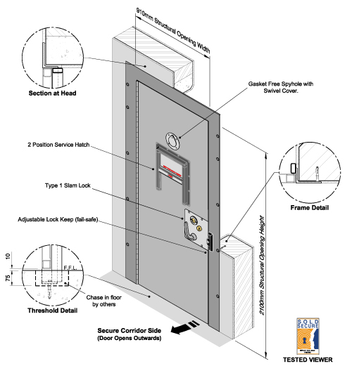 • Reinforcing plates to inside of door panel on cell side up to the height of the lock.