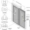 - Door panels mounted within door frame and hung on a full height tubular steel pivot hinge.