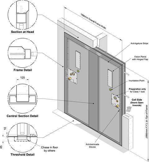 - Preparation for MoJ Class 1 lock supplied and fitted by HMPS or Private Prison Operator.