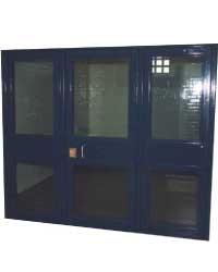 • Door and fixed panels are constructed from 40mm wide steel hollow section framework sheeted both sides with 3mm thick steel skins, mounted within a rolled hollow section frame.