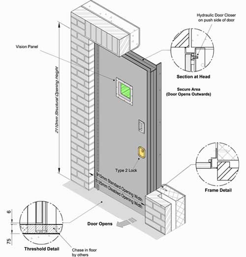 • PSE / Bb – Pass or circulation door with hinged cover on vision panel.Note – Doors for Crown Courts, the lock is supplied and fitted by HMCS.