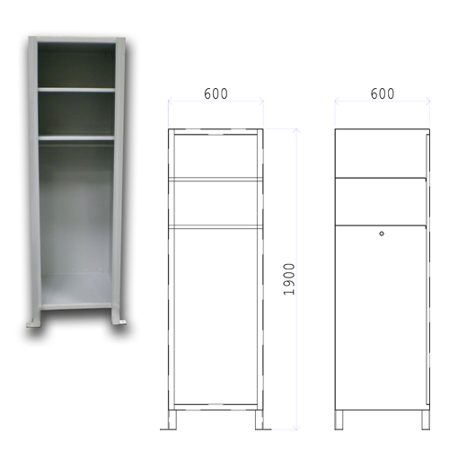 - A robust secure steel floor standing wardrobe designed specifically for use within a prison cell.