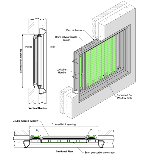 External window frame is thermally broken and is constructed from aluminium which can be opened to allow the free flow of air.