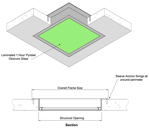 - 1 hour fire rated glass.
