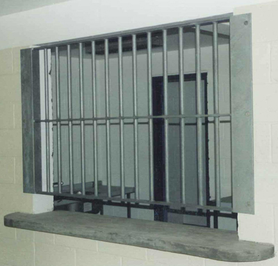 - A barred servery grille suitable for prison dining areas.