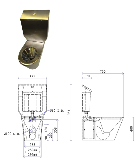 • Removable cistern top with tamper proof fixings.