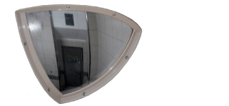 • Constructed from 3mm thick unbreakable polycarbonate with scratch resistant coating, the 90° quarter hemisphere mirror is designed for mounting at high level, in the top far corner of the room, thus providing a full view of the room.
