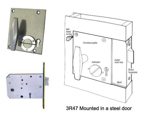 The 3R47 was introduced, at the request of the Home Office Prison Department, with the original intention of providing secure locking of cell doors in Crown and Magistrates Courts, by means of a lock that is essentially different to those used in UK prisons.