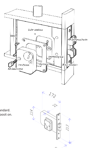 - Lockcase Depth(total) 171.5mm.