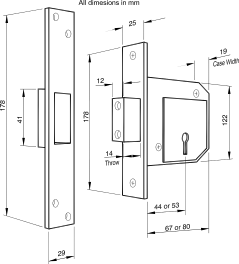 This 5 Lever 3G114 British Standard Deadlock is locked or unlocked by key from either side. This deadlock comes Supplied with matching escutcheons.