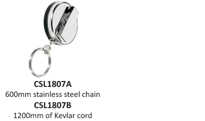 - 2 types available (600mm stainless steel chain or 1200mm Kevlar cord).